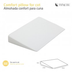 La almohada confort de Cambrass Farma, para cuna de 60 y 70 cm., levanta ligeramente el tronco del bebé en un ángulo de 15º favoreciendo la respiración y la digestión durante su descanso. Esta posición está recomendada por numerosos pediatras, especialmente en casos de regurgitación, otitis, resfriado y otras afecciones respiratorias. Su composición de TENCEL, una fibra natural y ecológica, le aporta absorción, suavidad y frescura por lo que se puede utilizar tanto sobre como debajo de la sábana. Además cuenta con una acabado impermeable que evita que los líquidos pasen a la espuma..