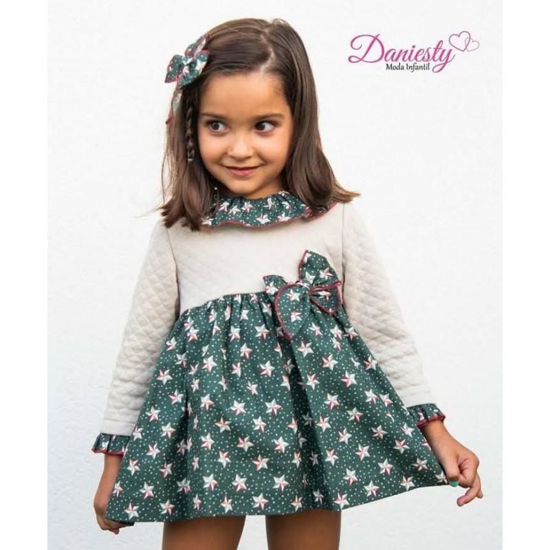 Jesusito en estampado liso con estampado de estrellas lazo en el lateral y braja con volante a juego.