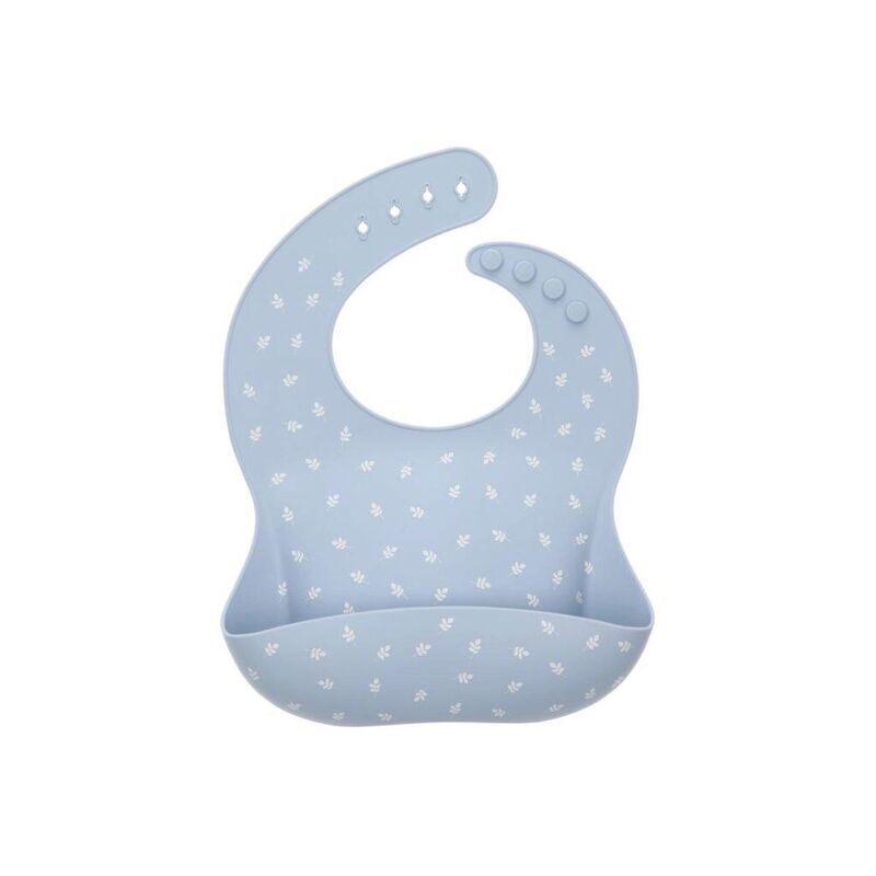 Babero de silicona con un bolsillo recogemigas para evitar que caiga la comida a la ropa.